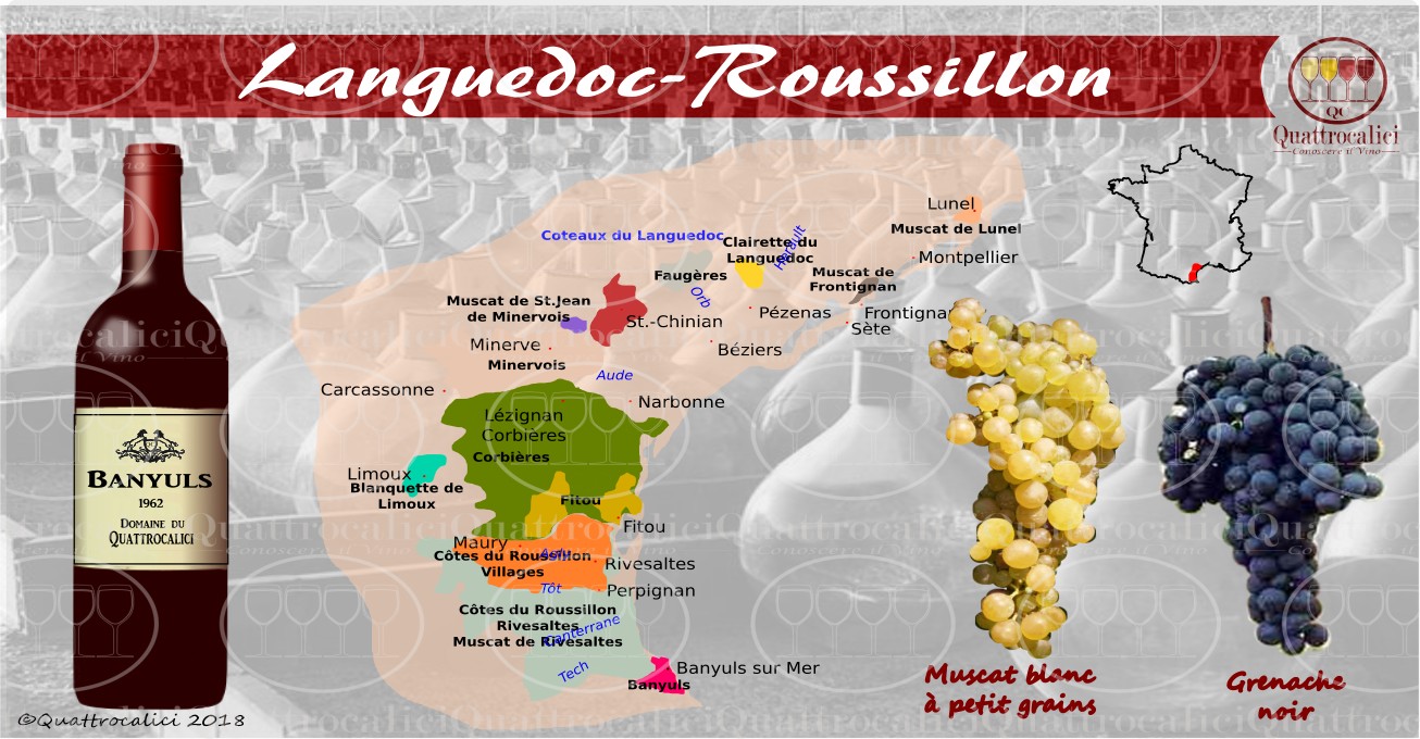 La regione del Languedoc-Roussillon si trova nel sud della Francia e rappresenta una delle aree vitivinicole più grandi e storicamente significative del paese.