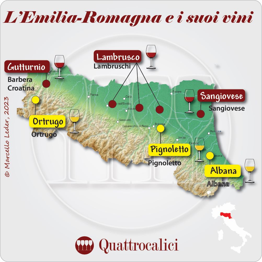 L'Emilia-Romagna è nota per la produzione di vini rossi, bianchi e rosati. In particolare: