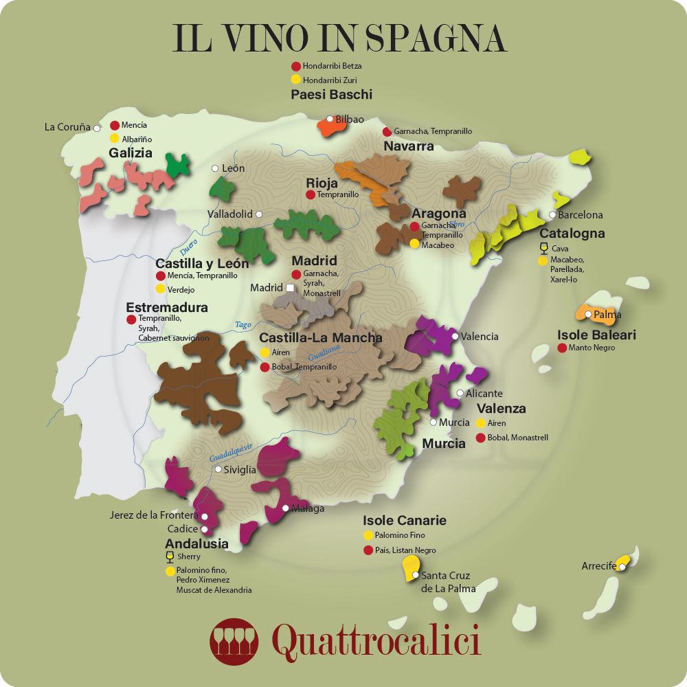 - Rioja: vini rossi principalmente a base di Tempranillo, ma anche bianchi.