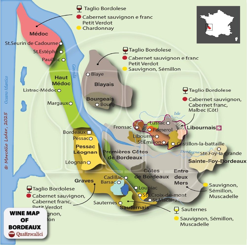 - Suddivisioni: La regione di Bordeaux è suddivisa in diverse sotto-regioni, ognuna con caratteristiche specifiche:
