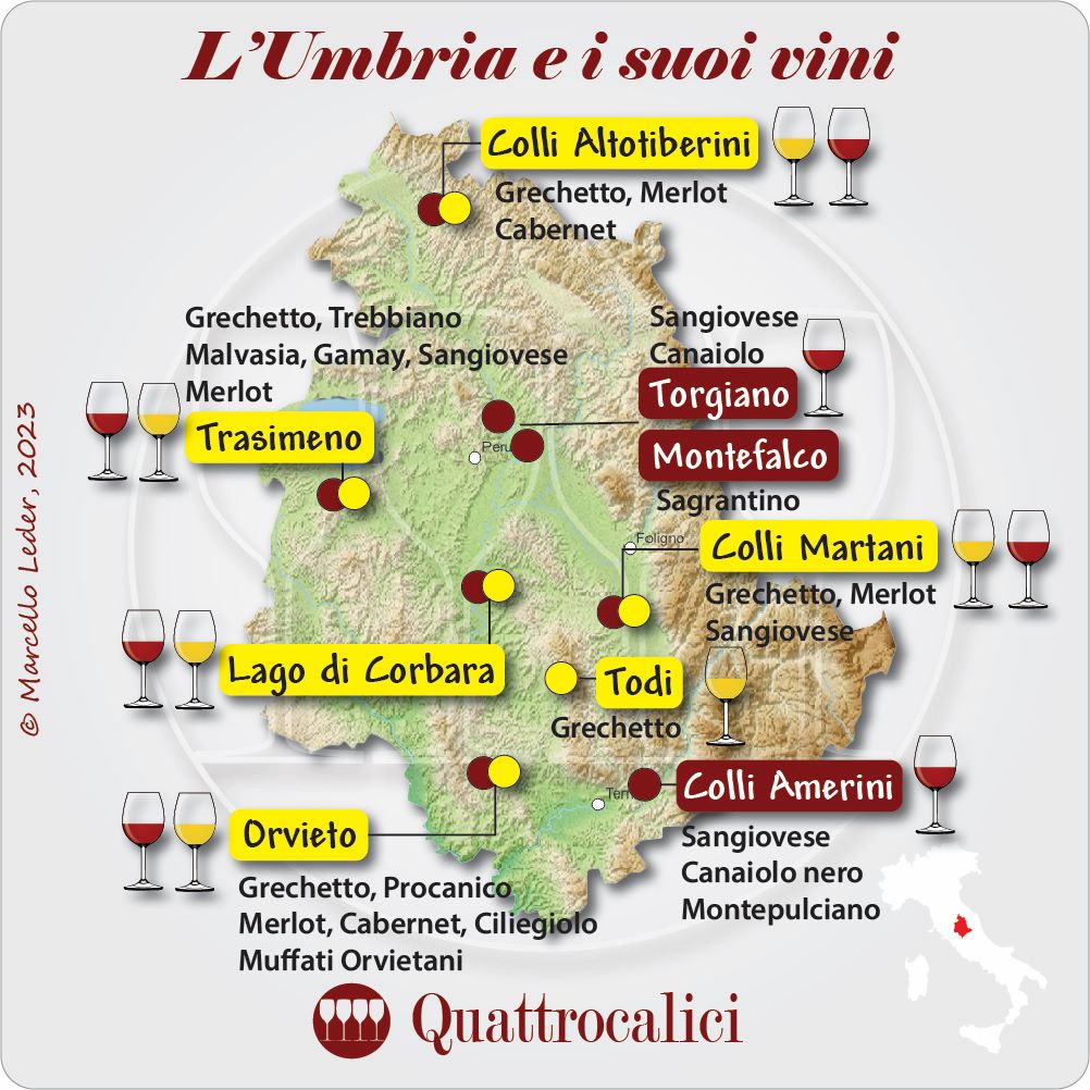 - Colli Martani: terreni argillo-calcarei, famosi per il Grechetto e il Sangiovese.
